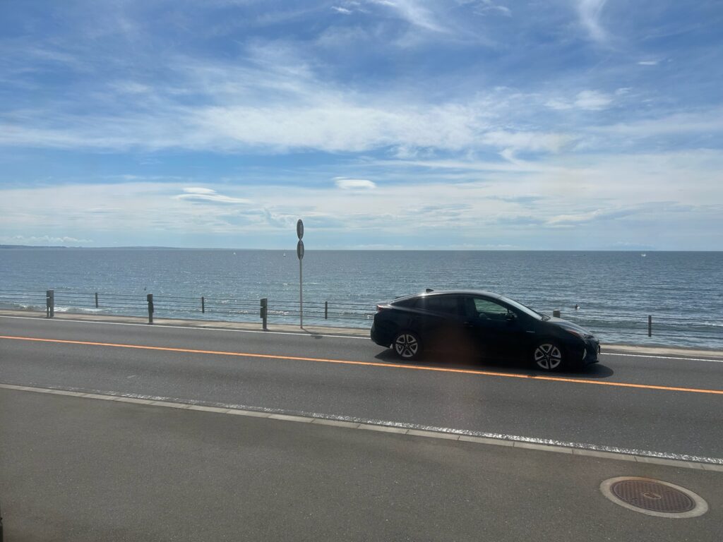 江ノ電といえばこのオーシャンビュー。ただ流れる風景を見てるだけでも楽しいです。ヨットに乗ってる人やサーファーがたくさんいました。