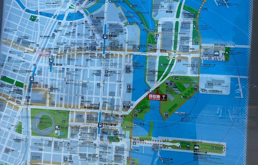 馬車道駅から横浜駅まで向かおうと思い、近くにあったマップで地図を確認。