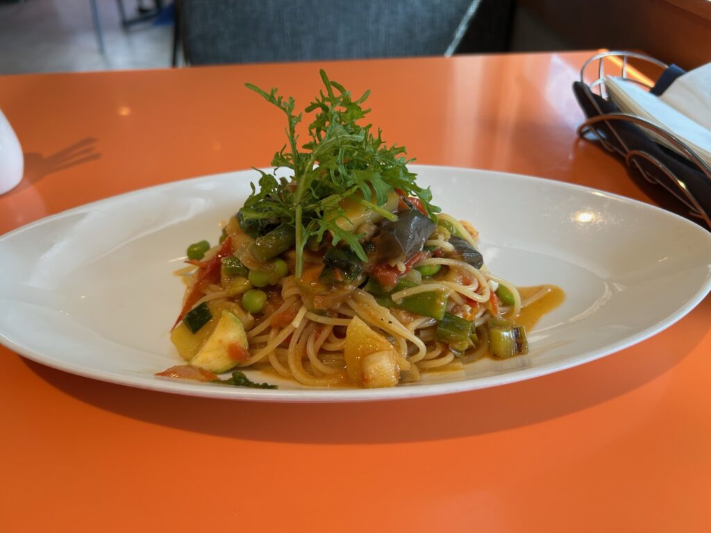 メインディッシュのパスタが登場。メニューによると朝採れの鎌倉野菜を使っており、季節ごとに異なるようです。