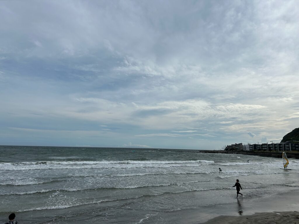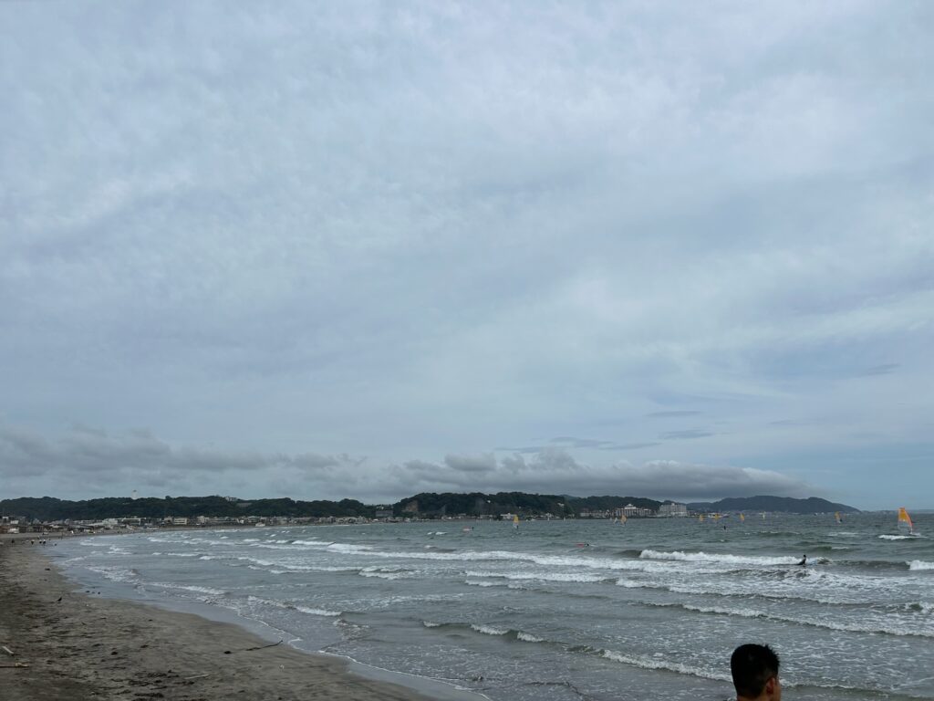 鎌倉駅から帰る途中、なんとなく由比ガ浜で降りて海岸へ。風がそこそこあったので、ヨットに乗っている人が多かったです。