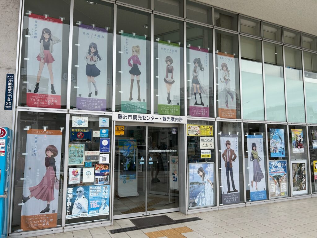 青ブタの幟やポスターがいろんなところにありました。記事を書きながら視聴してますが、確かに藤沢駅だったり湘南の色んな場所が出てきます。七里ヶ浜駅で降りればよかったなあ。